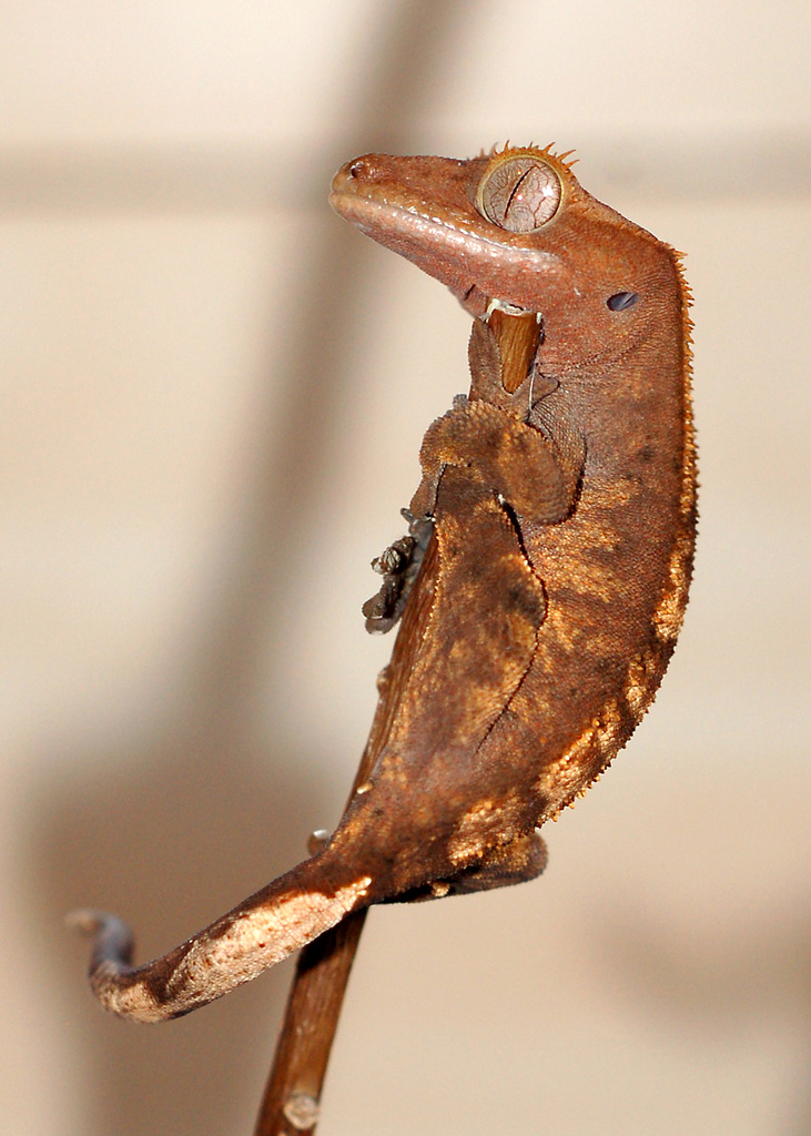 Crested geckos have some amazing adaptations on their feet and tail, their toes and tail tip are covered in hundreds of tiny hairs which allow them to climb to great heights, even on glass!