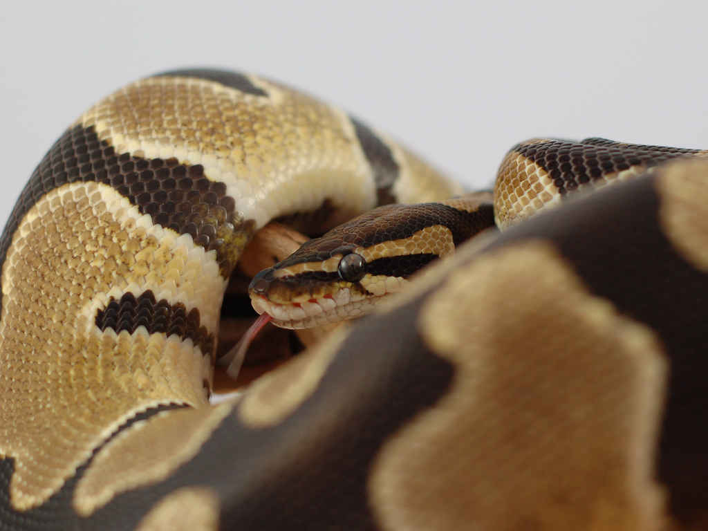 Royal pythons Come from Africa and love feed on mice and rats which make them very popular with farmers. They even have heat sensitive pits on their face to help search out their dinner.